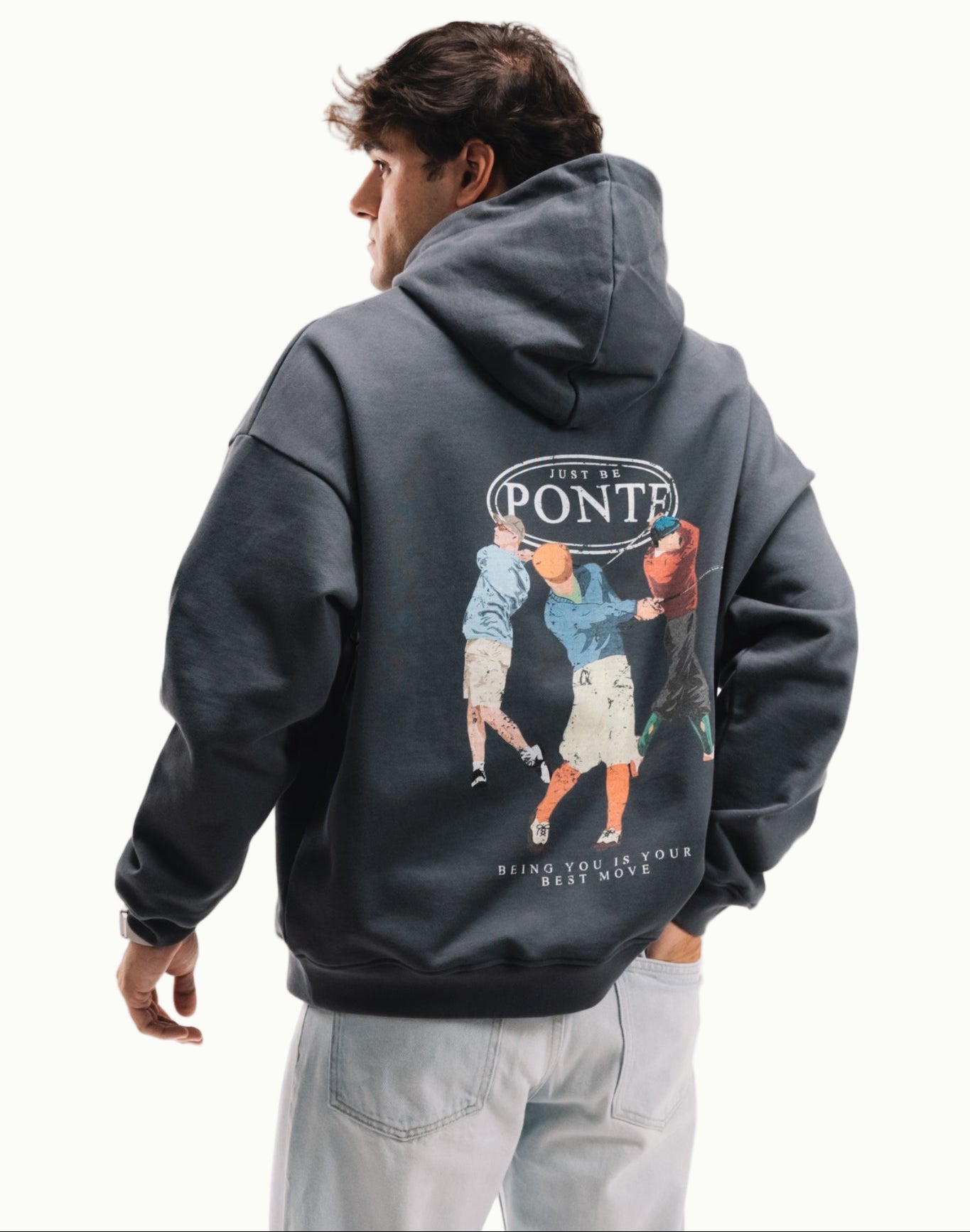 Las tres figuras en diferentes fases del swing convierten esta prenda en una